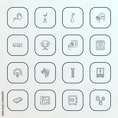 Furniture Icons Line Style Set With Tall Chair House Plan