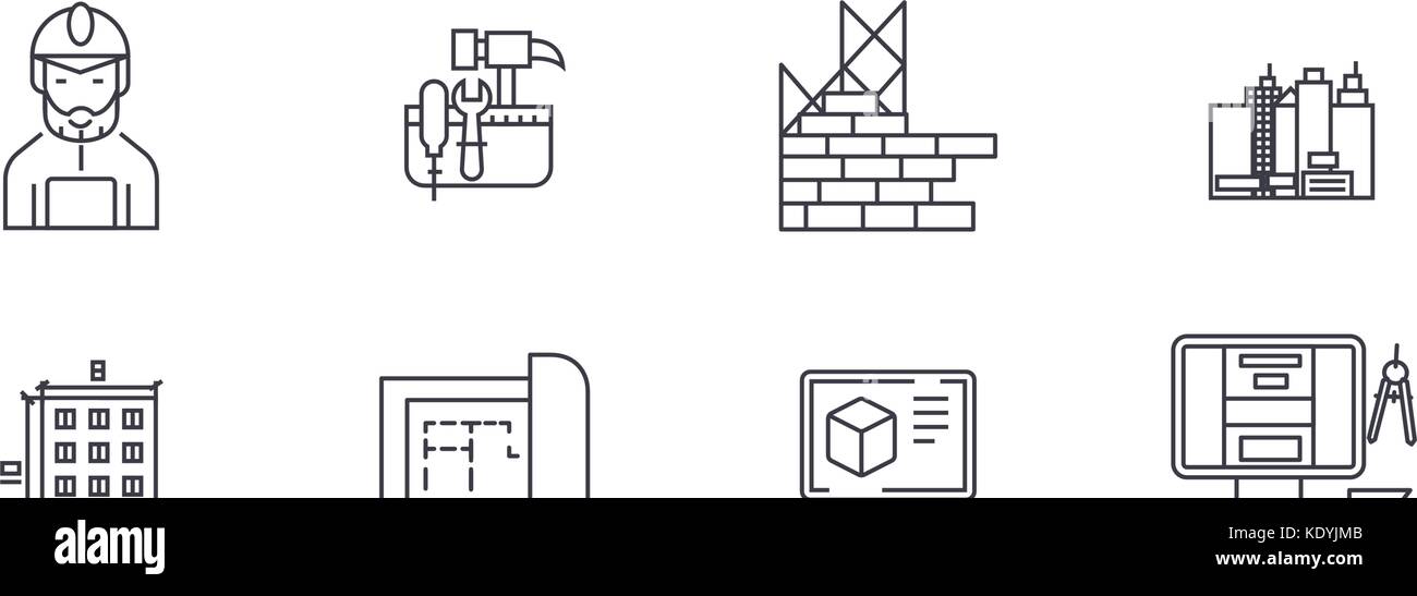 Architect Studio House Plan Building Construction Design Architecture Line Icons Editable Strokes Flat Design Vector Illustration Symbol