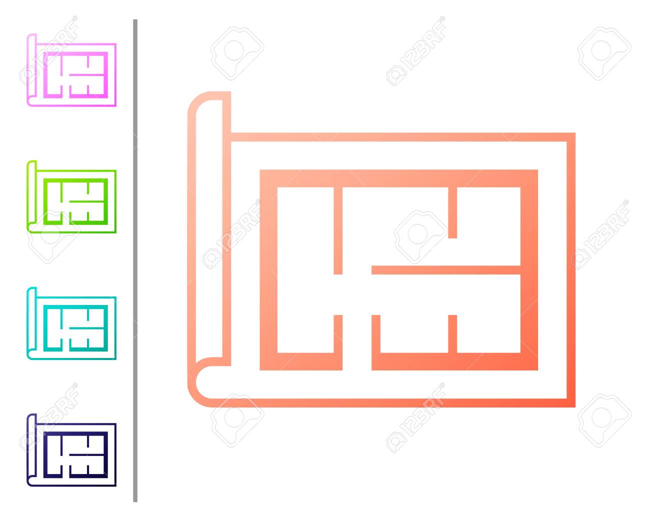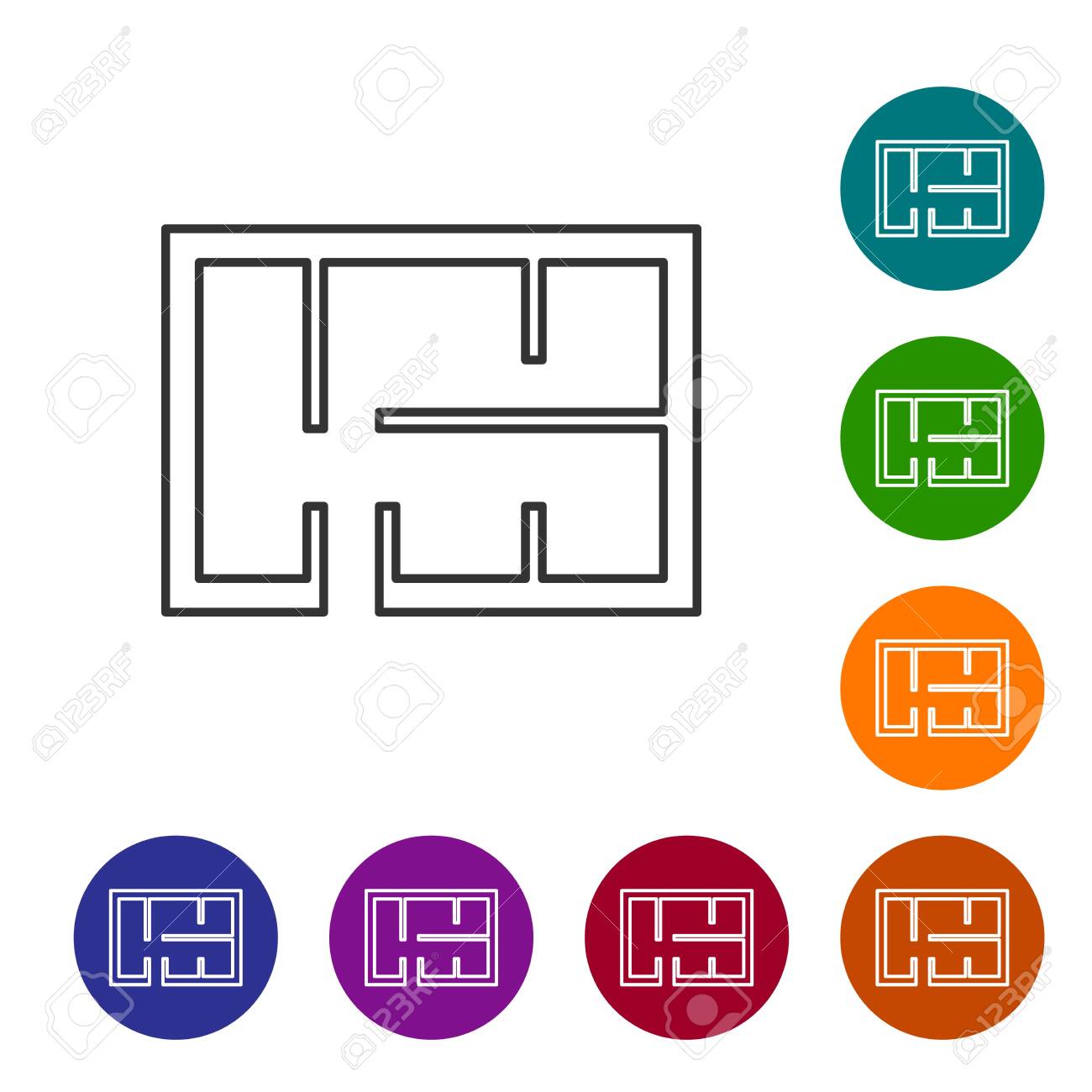 Grey Line House Plan Icon Isolated On White Background Set Icons