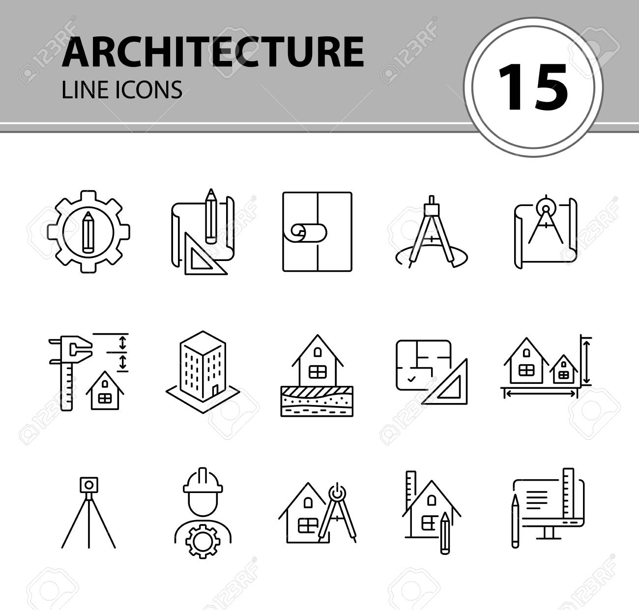 Architecture Line Icon Set Pencil Ruler Floor Plan Building
