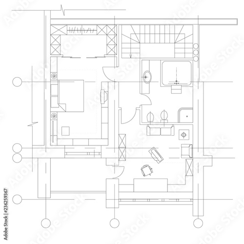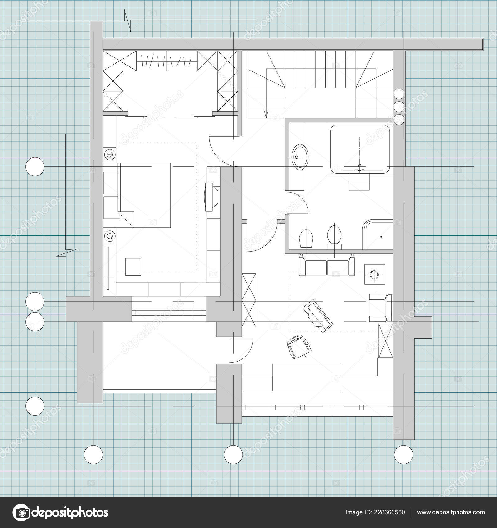 Standard Furniture Symbols On Floor House Plans Stock Vector